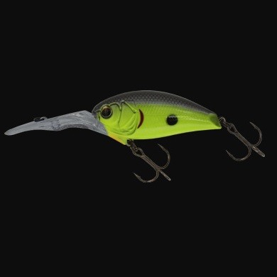Imakatsu IK 300 RS Chaos Diver è un crankbait di media profondità che lavora a circa 3mt e permette di esplorare ampie zone del lago grazie alla fantastica lanciabilità. Infatti è equipaggiato con un sofisticato sistema di trasferimento del peso interno che si sposta in coda durante il lancio permettendo una incredibile stabilità di volo e quindi lanci estremamente lunghi e precisi grazie anche ad un ottima aerodinamica.