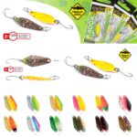 Kooky è dotato di due ami singoli intercambiabili: uno con ardiglione, uno senza ardiglione (modello 10130) fatti in acciaio al carbonio con punta 3D Cut. Realizzato in colori esclusivi con glitter per un’attrazione avanzata. Blister contenente 1 cucchiaino.